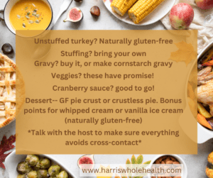 The main issue is often cross-contact, and/or people who make mistakes and really mean well. Ideally, you try to serve yourself first, with clean utensils. If there’s something you know you’ll want leftovers of, make sure to put it aside in a covered dish.
